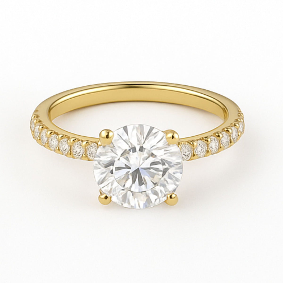 Solitaire Pavé Round Engagement Ring – 2.00ct